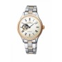 Orient Star Classic Semi Skeleton RK-ND0001S - ladies watch produced by Orient. It has Japanese automatic movement and 55C40 calibre. Stainless steel, gold plated case of round shape. Case dimensions are 30.5 mm. in diameter and 11 mm. in thickness. The dial of this Orient watch is beige. Display type: analog. This timepiece has mineral glass. Stainless steel, gold plated band, band color: silver, gold. 50 m. water resistance. The watch is from Orient Classic collection. The following features are equipped: antimagnetic.