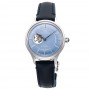 Orient Star Classic Semi Skeleton RK-ND0012L - ladies watch made by Orient. It has Japanese automatic movement and 55C22 calibre. Stainless steel case of round shape. Case dimensions are 30.5 mm. in diameter and 11 mm. in thickness. The dial of this Orient watch is blue. Display type: analog. This timepiece has mineral glass. Leather band, band color: black. 50 m. water resistance. The watch is from Orient Star collection. The following features are equipped: antimagnetic.