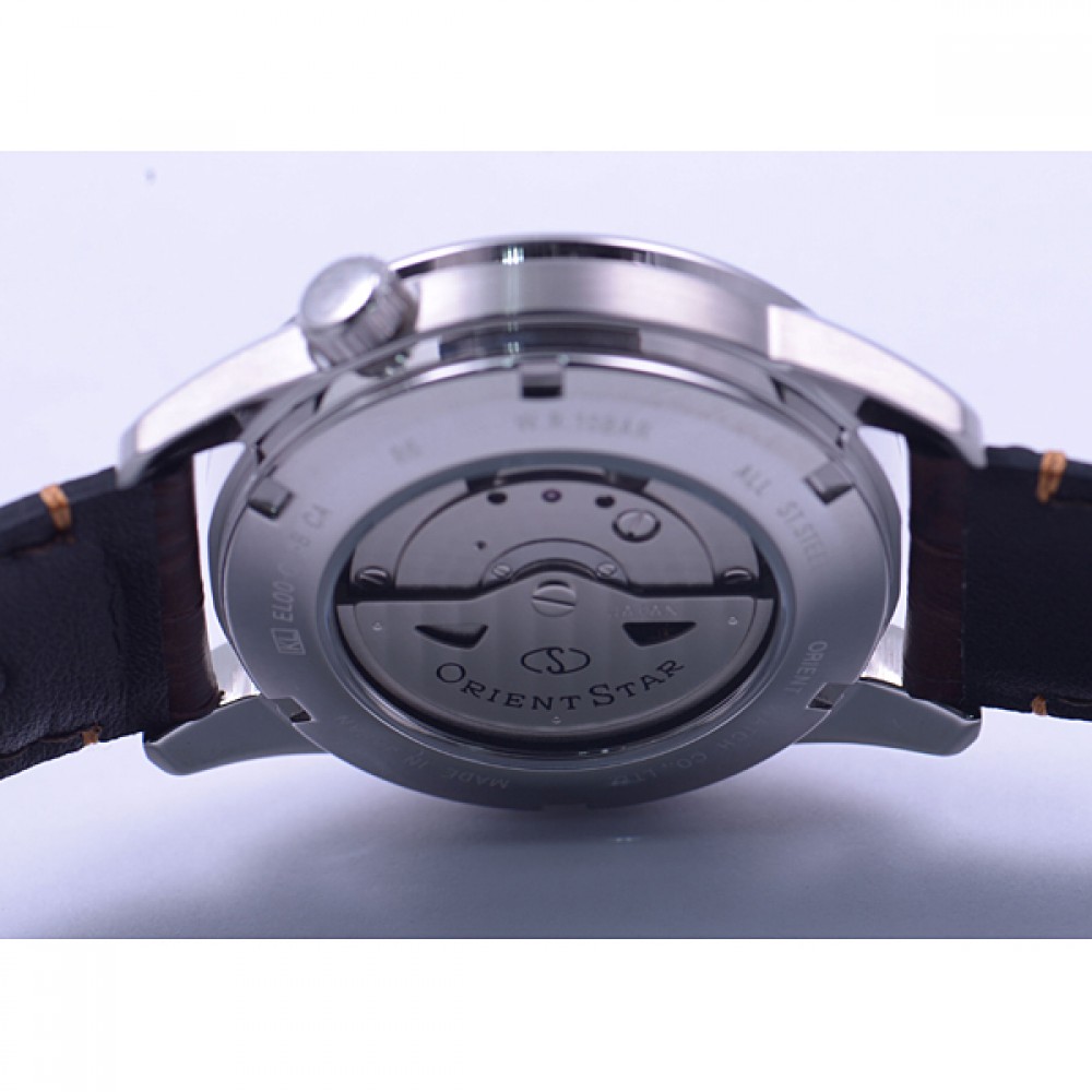 ORIENT STAR WZ0301EL - men's watch produced by Orient. It is equipped with Japanese automatic movement and 40N50 calibre. Stainless steel case of round shape. Case dimensions are 39 mm. in diameter and 12.2 mm. in thickness. The dial of this Orient watch is brown. Display type: analog. This timepiece has sapphire, antireflection coating glass. Leather band, band color: brown. 100 m. water resistance. The watch is from Orient Star collection. The following features are equipped: antimagnetic, power reserve indicator, date.