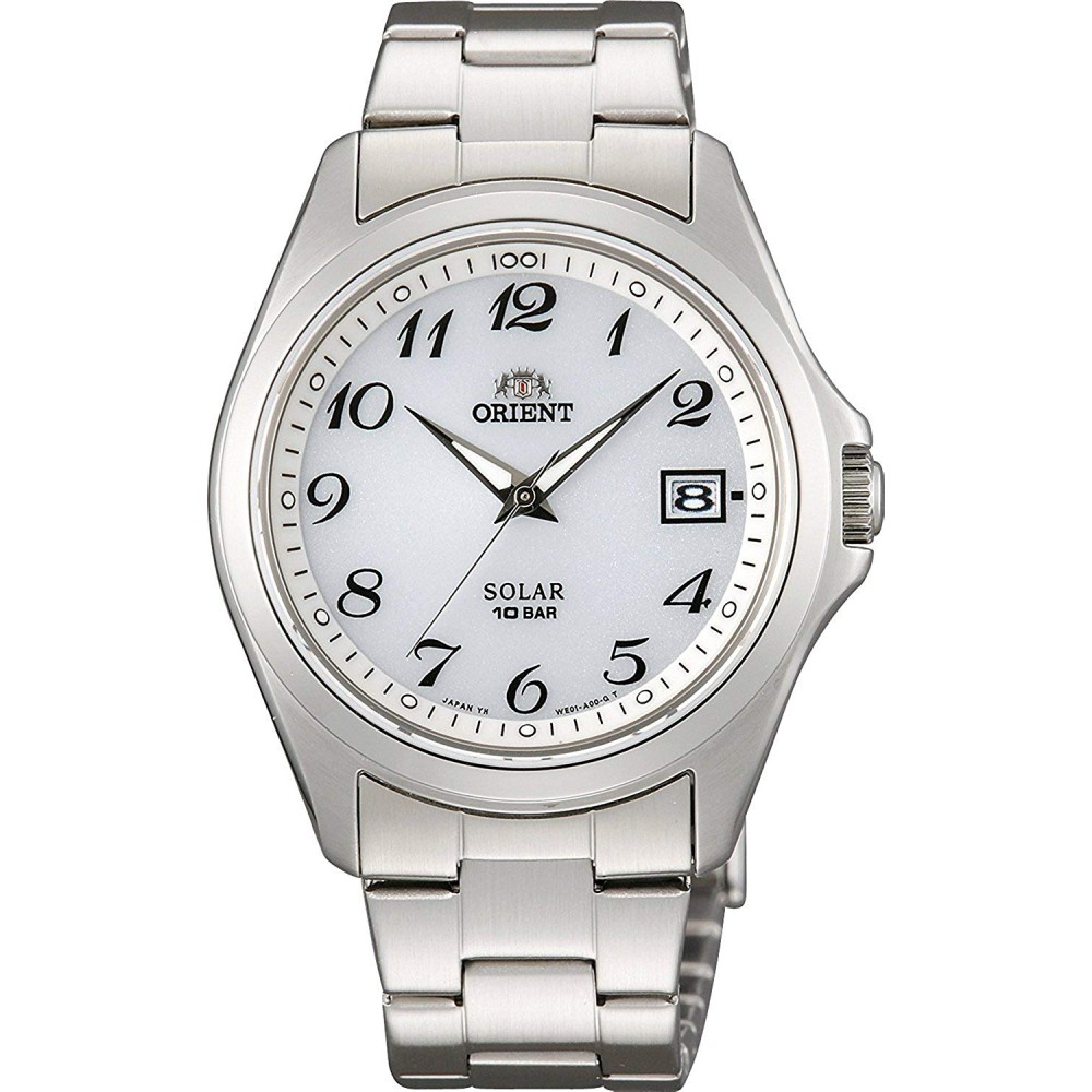 ORIENT WV0041WE - men's watch manufactured by Orient. It has Japanese solar quartz movement and KL700 calibre. Stainless steel case of round shape. Case dimensions are 38 mm. in diameter and 9.8 mm. in thickness. The dial of this Orient watch is white. Display type: analog. This timepiece has sapphire glass. Stainless steel band, band color: silver. 100 m. water resistance. The watch is from Orient Solar collection. The following features are equipped: date, glowing hands, glowing markers.