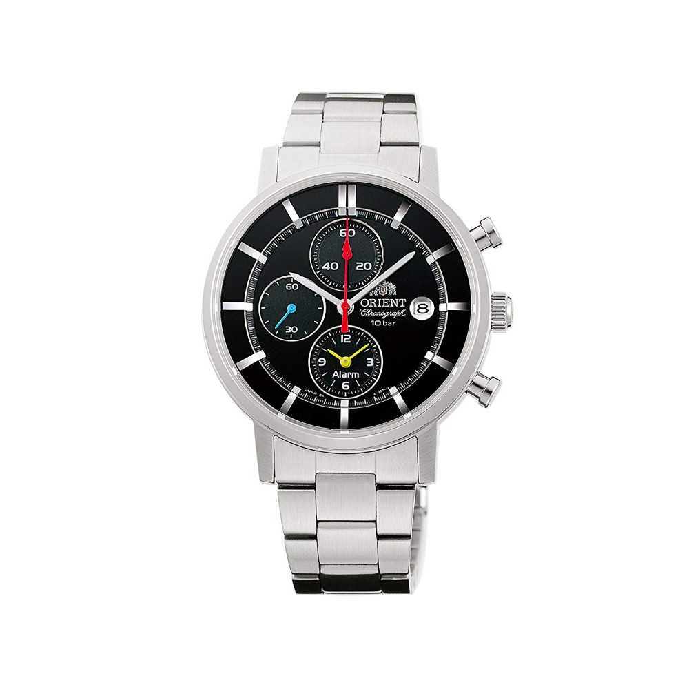 ORIENT WV0061TY - men's watch produced by Orient. It has Japanese solar quartz movement and KSA00 calibre. Stainless steel case of round shape. Case dimensions are 39 mm. in diameter and 11.4 mm. in thickness. The dial of this Orient watch is black. Display type: analog. This timepiece has sapphire glass. Stainless steel band, band color: silver. 100 m. water resistance. The watch is from Orient Stylish and Smart collection. The following features are equipped: date, chronograph, alarm.