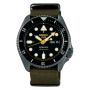 Seiko 5 Sports DENHAM collaboration limited edition model SBSA283 - men's watch manufactured by Seiko. It has Japanese automatic movement and 4R36 calibre. Stainless steel case of round shape. Case dimensions are 42.5 mm. in diameter and 13.4 mm. in thickness. The dial of this Seiko watch is black. Display type: analog. This timepiece has hardlex glass. Nylon band, band color: khaki. 100 m. water resistance. The watch is from 5 Sports collection. The following features are equipped: date, day, glowing hands, glowing markers, limited edition, antimagnetic.