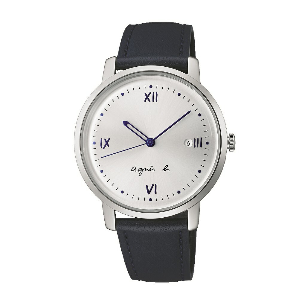 Seiko agnes b. FCRK983 - men's watch made by Seiko. It has Japanese quartz movement and VJ32 calibre. Stainless steel case of round shape. Case dimensions are 38 mm. in diameter and 8.6 mm. in thickness. The dial of this Seiko watch is silver, white. Display type: analog. This timepiece has hardlex glass. Leather band, band color: blue. 50 m. water resistance. The watch is from agnes b. collection. The following features are equipped: date.