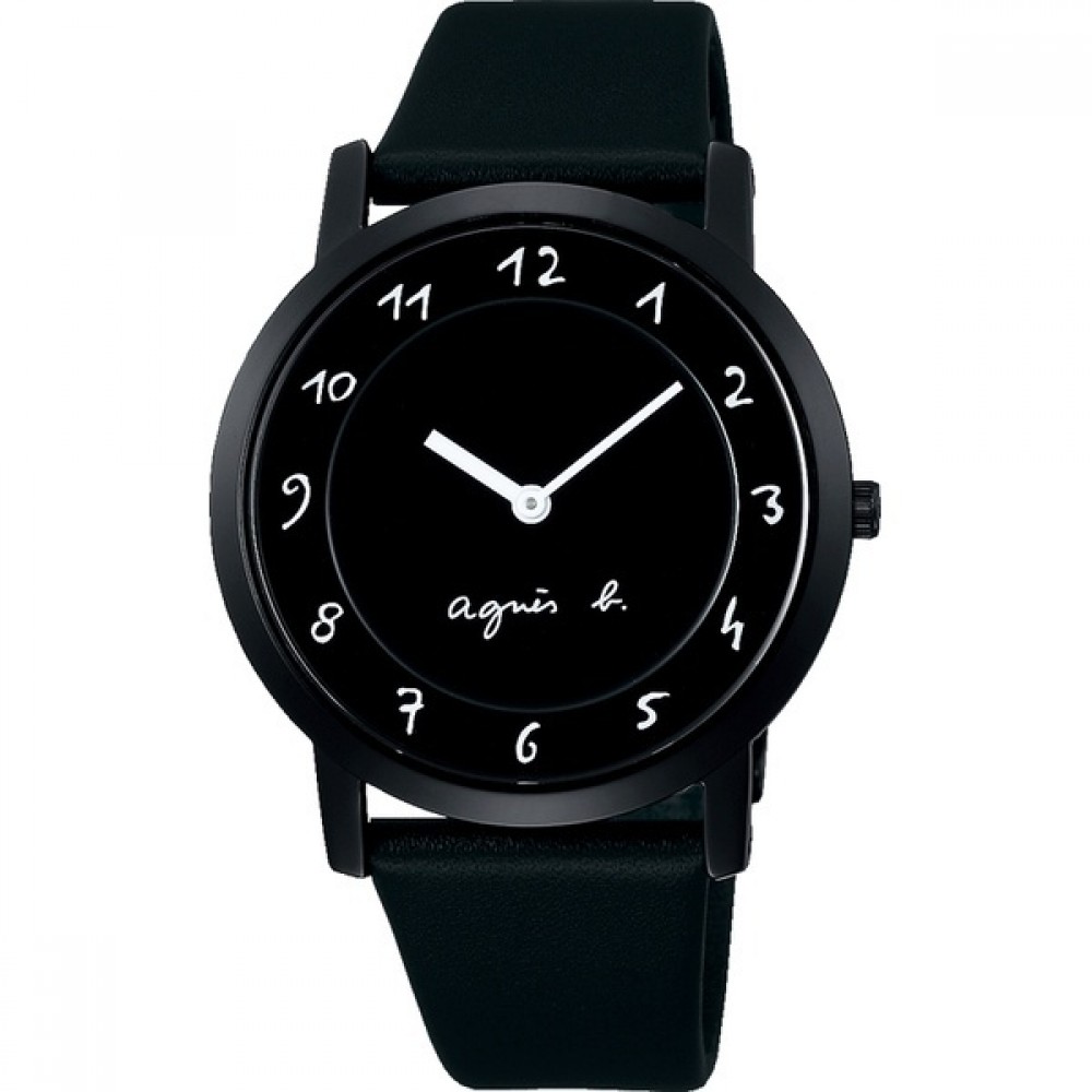 Seiko agnes.b Marcello! FCRK987 - men's watch made by Seiko. It has Japanese quartz movement and VJ20 calibre. Stainless steel, hard coating case of round shape. Case dimensions are 38 mm. in diameter and 6.9 mm. in thickness. The dial of this Seiko watch is black. Display type: analog. This timepiece has hardlex glass. Leather band, band color: black. 50 m. water resistance. The watch is from agnes b. collection.
