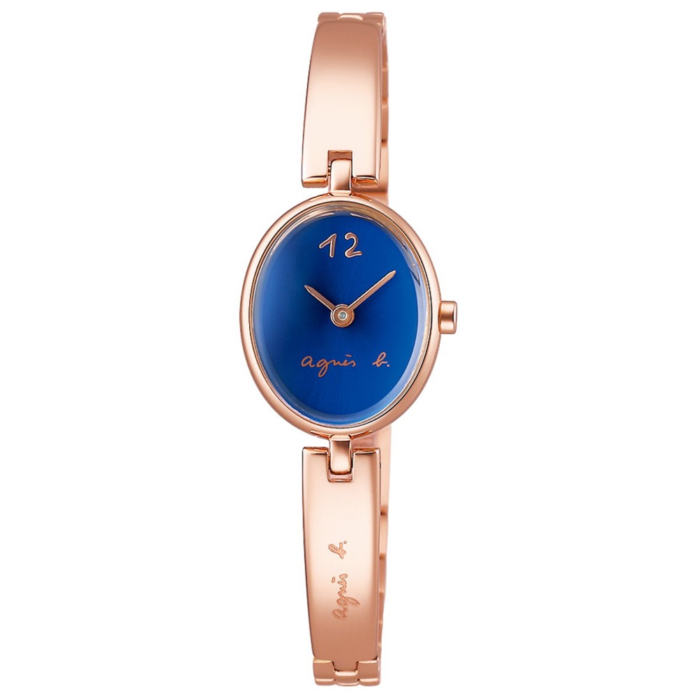 Seiko agnes.b Marcello FCSK919 - ladies watch manufactured by Seiko. It is equipped with Japanese quartz movement and VC00 calibre. Stainless steel, gold plated case of oval shape. Case dimensions are 18 mm. in diameter and 7.6 mm. in thickness. The dial of this Seiko watch is blue. Display type: analog. This timepiece has hardlex glass. Stainless steel, gold plated band, band color: gold. 50 m. water resistance. The watch is from agnes b. collection.