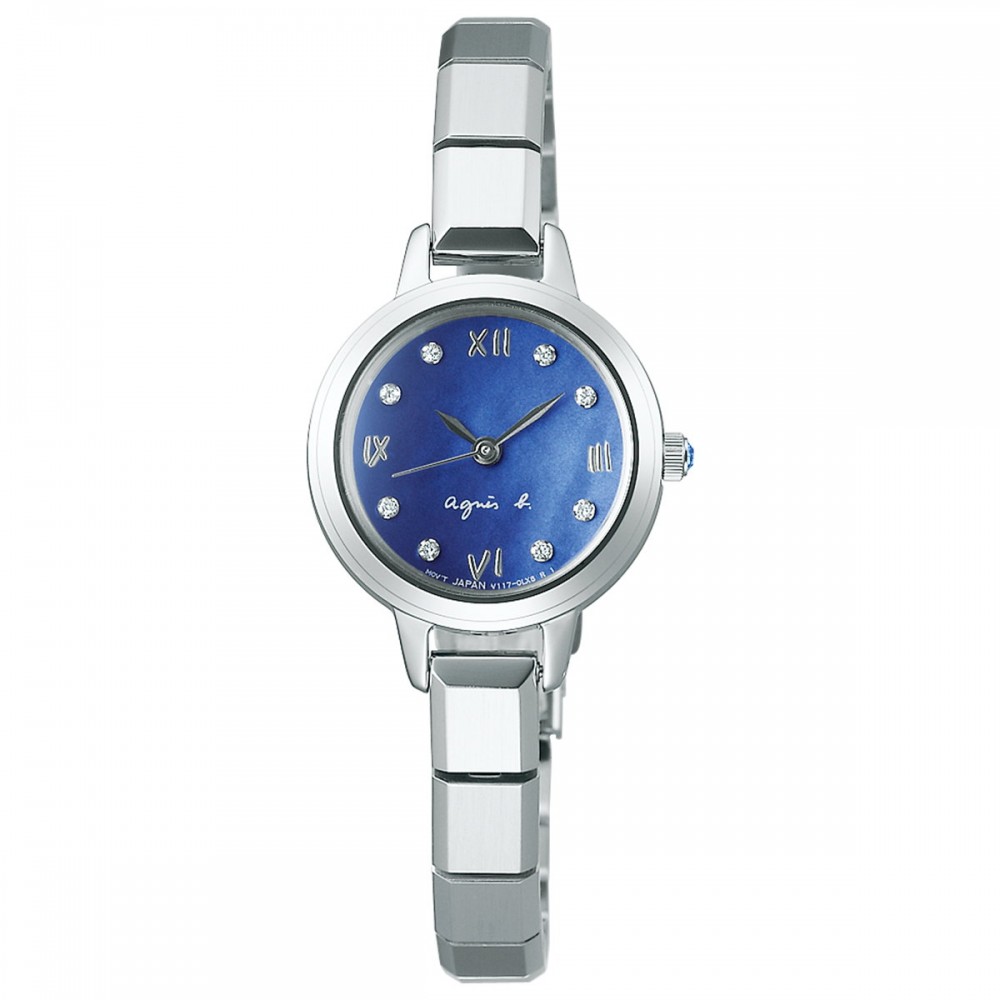 Seiko agnes.b Marcello! Limited Model FBSD722 - ladies watch manufactured by Seiko. It is equipped with Japanese solar quartz movement and V117 calibre. Stainless steel case of round shape. Case dimensions are 22 mm. in diameter. The dial of this Seiko watch is mother of pearl, blue. Display type: analog. This timepiece has hardlex glass. Stainless steel band, band color: silver. 50 m. water resistance. The watch is from agnes b. collection. The following features are equipped: limited edition, crystal set.