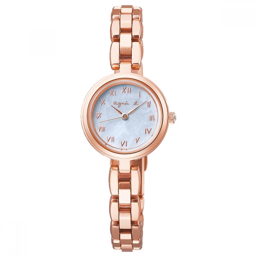 Seiko agnes b. Sam FCSD995 - ladies watch produced by Seiko. It has Japanese solar quartz movement and V117 calibre. Stainless steel, gold plated case of round shape. Case dimensions are 21.5 mm. in diameter and 6.9 mm. in thickness. The dial of this Seiko watch is mother of pearl. Display type: analog. This timepiece has hardlex glass. Stainless steel, gold plated band, band color: gold. 50 m. water resistance. The watch is from agnes b. collection.