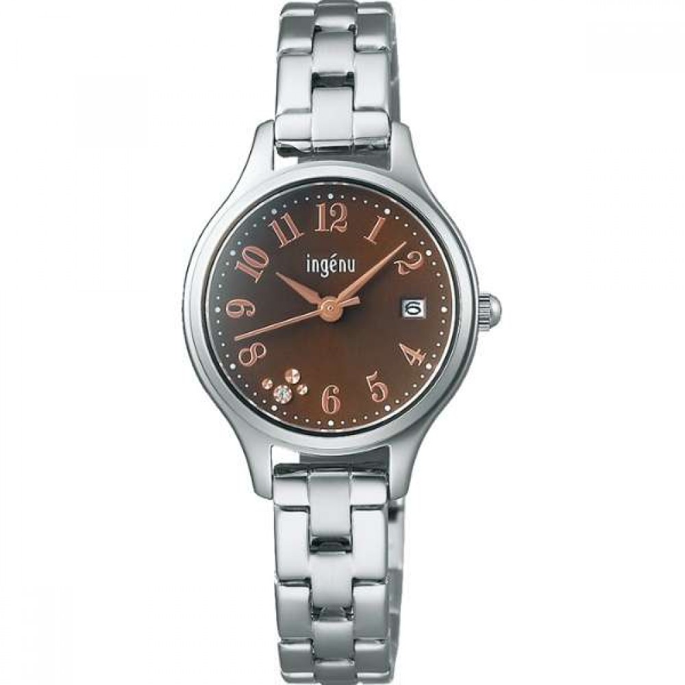 Seiko Alba AHJK465 - ladies watch made by Seiko. It is equipped with Japanese quartz movement and VJ22 calibre. Stainless steel case of round shape. Case dimensions are 26 mm. in diameter and 7.7 mm. in thickness. The dial of this Seiko watch is brown. Display type: analog. This timepiece has sapphire glass. Stainless steel band, band color: silver. 50 m. water resistance. The watch is from Alba collection. The following features are equipped: date, crystal set.