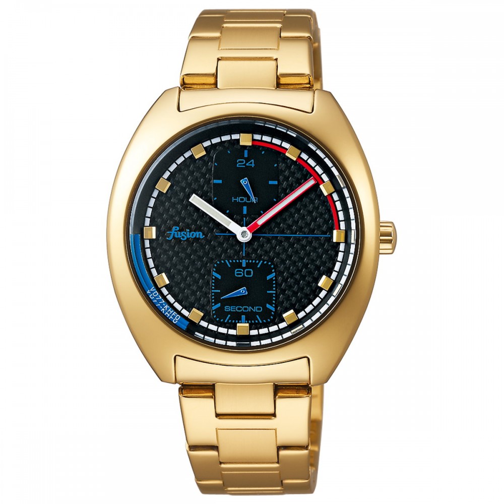 Seiko Alba Fusion AFSK401 - unisex watch manufactured by Seiko. It has Japanese quartz movement and VD77 calibre. Stainless steel, gold plated case of round shape. Case dimensions are 36.6 mm. in diameter and 9.7 mm. in thickness. The dial of this Seiko watch is black. Display type: analog. This timepiece has hardlex glass. Stainless steel, gold plated band, band color: gold. 50 m. water resistance. The watch is from Alba collection. The following features are equipped: glowing hands.