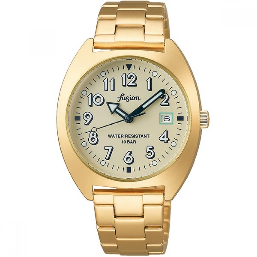 Seiko Alba Fusion School AFSJ403 - unisex watch produced by Seiko. It has Japanese quartz movement and VJ32 calibre. Stainless steel, gold plated case of round shape. Case dimensions are 37 mm. in diameter and 9.7 mm. in thickness. The dial of this Seiko watch is beige. Display type: analog. This timepiece has hardlex glass. Stainless steel, gold plated band, band color: gold. 100 m. water resistance. The watch is from Alba collection. The following features are equipped: glowing hands, date, glowing markers.