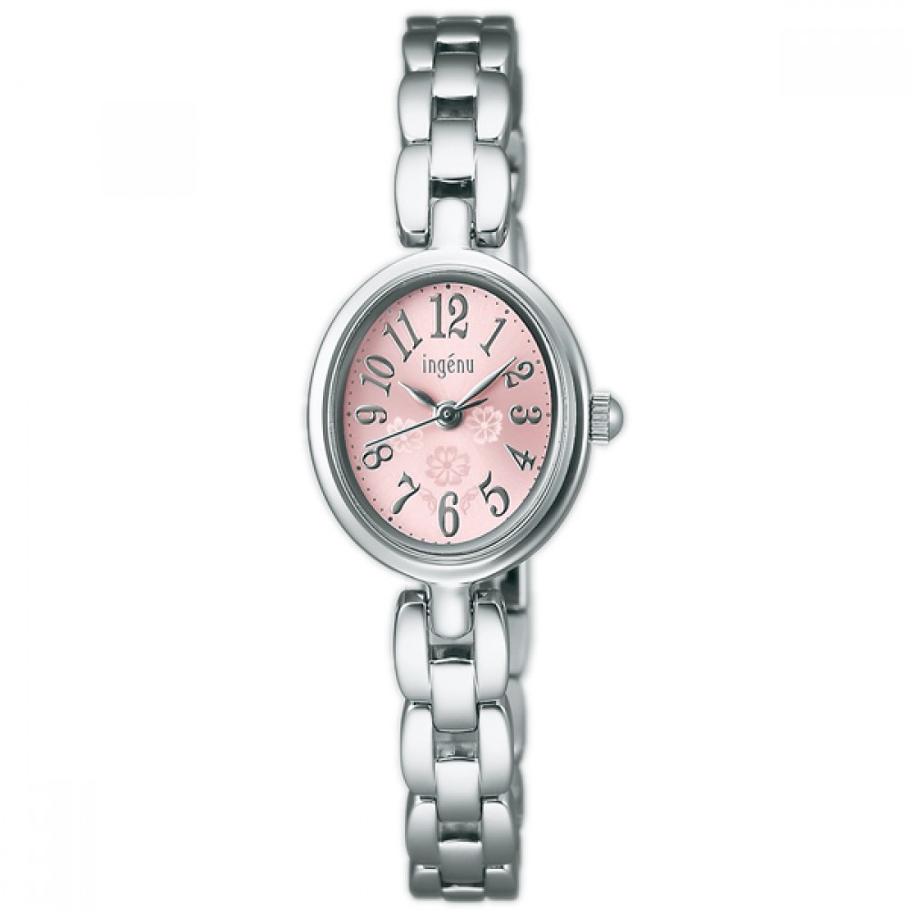 Seiko Alba ingenu AHJK402 - ladies watch produced by Seiko. It is equipped with Japanese quartz movement and VX51 calibre. Stainless steel case of oval shape. Case dimensions are 19.5 mm. in diameter and 6.6 mm. in thickness. The dial of this Seiko watch is pink. Display type: analog. This timepiece has hardlex glass. Stainless steel band, band color: silver. 30 m. water resistance. The watch is from Alba collection.