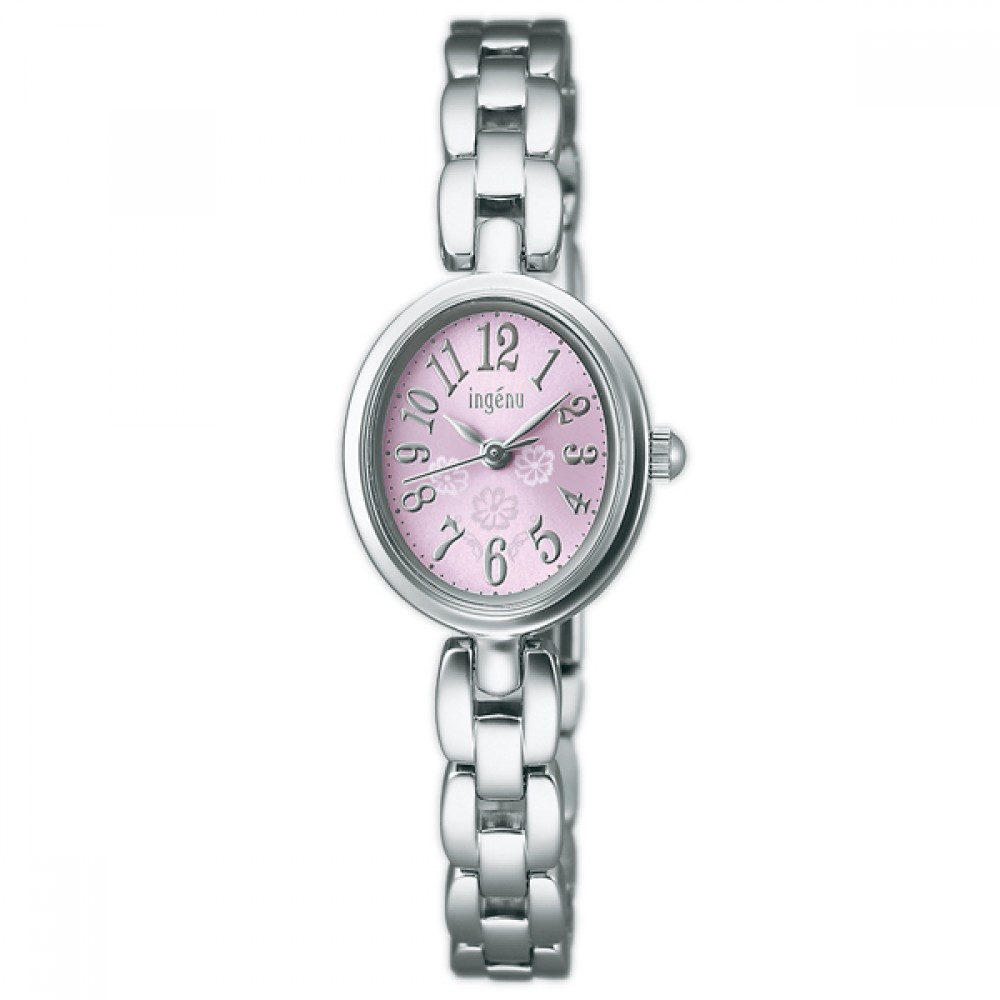 Seiko Alba ingenu AHJK403 - ladies watch produced by Seiko. It is equipped with Japanese quartz movement and VX51 calibre. Stainless steel case of oval shape. Case dimensions are 19.5 mm. in diameter and 6.6 mm. in thickness. The dial of this Seiko watch is purple. Display type: analog. This timepiece has hardlex glass. Stainless steel band, band color: silver. 30 m. water resistance. The watch is from Alba collection.