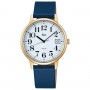 Seiko Alba Riki Watanabe AKPD401 - ladies watch manufactured by Seiko. It has Japanese solar quartz movement and V157 calibre. Stainless steel, gold plated case of round shape. Case dimensions are 35 mm. in diameter and 8.9 mm. in thickness. The dial of this Seiko watch is white. Display type: analog. This timepiece has hardlex glass. Calf leather band, band color: blue. 50 m. water resistance. The watch is from Alba collection. The following features are equipped: date.