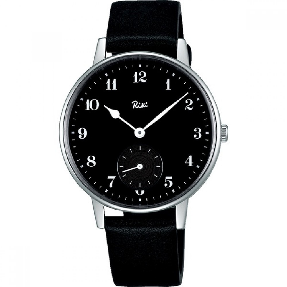 Seiko Alba Riki Watanabe AKPK432 - unisex watch produced by Seiko. It is equipped with Japanese quartz movement and VD78 calibre. Stainless steel case of round shape. Case dimensions are 36.6 mm. in diameter and 8.5 mm. in thickness. The dial of this Seiko watch is black. Display type: analog. This timepiece has hardlex glass. Leather band, band color: black. 30 m. water resistance. The watch is from Alba collection.