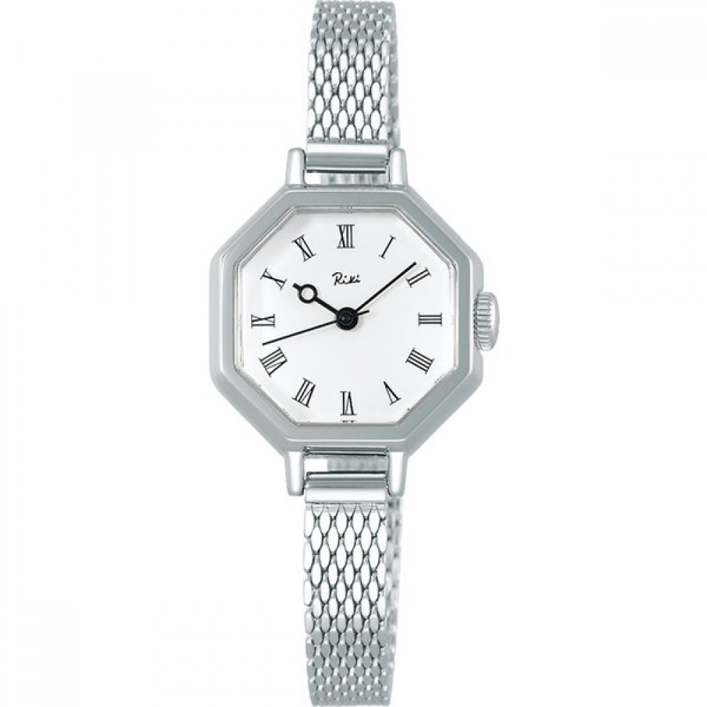 Seiko Alba Riki Watanabe AKQK454 - ladies watch produced by Seiko. It is equipped with Japanese quartz movement and VC01 calibre. Stainless steel case of polygon shape. Case dimensions are 23.3 mm. in diameter and 8.2 mm. in thickness. The dial of this Seiko watch is white. Display type: analog. This timepiece has hardlex glass. Stainless steel band, band color: silver. 30 m. water resistance. The watch is from Alba collection.