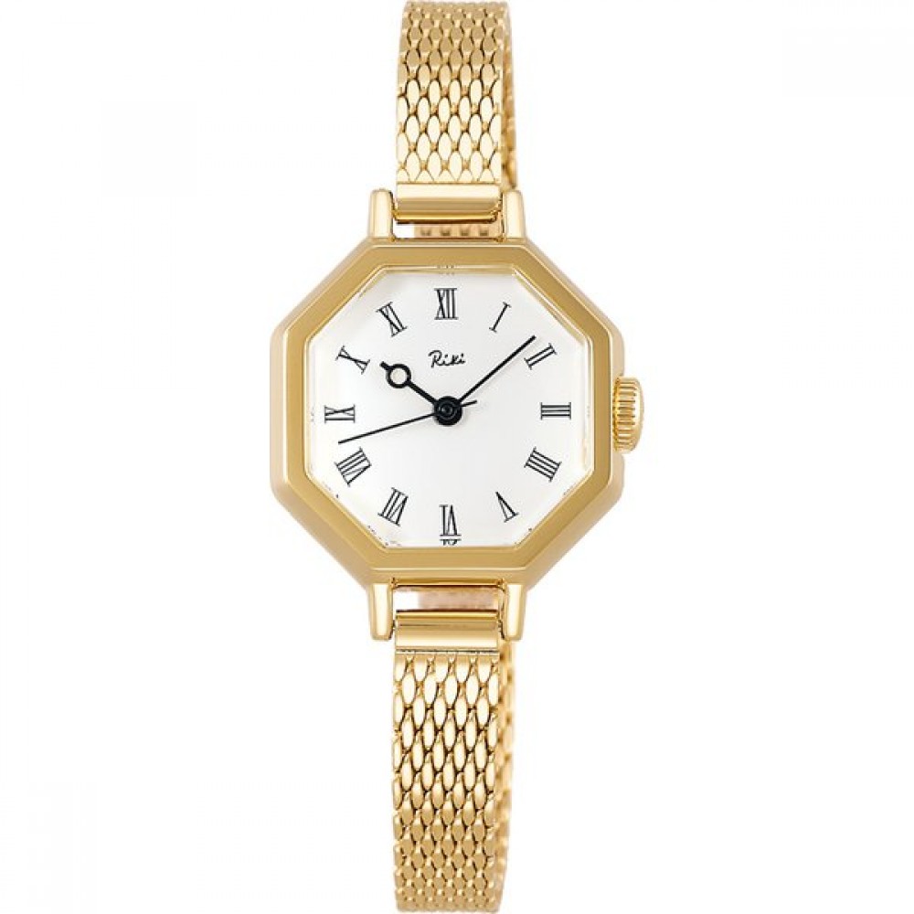 Seiko Alba Riki Watanabe AKQK455 - ladies watch manufactured by Seiko. It is equipped with Japanese quartz movement and VC01 calibre. Stainless steel, gold plated case of polygon shape. Case dimensions are 23.3 mm. in diameter and 8.2 mm. in thickness. The dial of this Seiko watch is white. Display type: analog. This timepiece has hardlex glass. Stainless steel, gold plated band, band color: gold. 30 m. water resistance. The watch is from Alba collection.