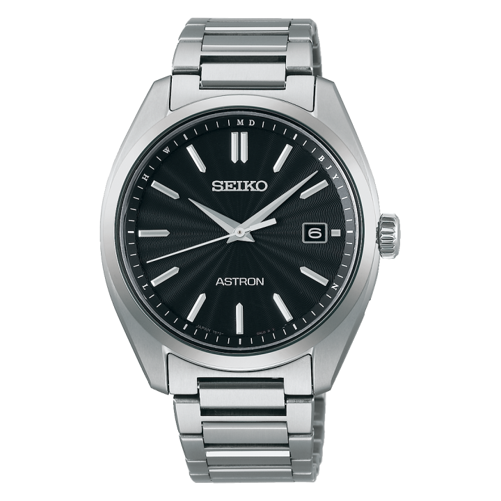 Seiko Astron SBXY033 - men's watch made by Seiko. It is equipped with Japanese solar quartz movement and 7B72 calibre. Titanium, hard coating case of round shape. Case dimensions are 39 mm. in diameter and 9.6 mm. in thickness. The dial of this Seiko watch is black. Display type: analog. This timepiece has sapphire, super clear coating glass. Titanium band, band color: silver. 100 m. water resistance. The watch is from Astron collection. The following features are equipped: antimagnetic, radio controlled, perpetual calendar, date.
