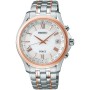 Seiko Dolce SADZ202 - men's watch made by Seiko. It is equipped with Japanese solar quartz movement and 7B27 calibre. Titanium, hard coating, gold plated case of round shape. Case dimensions are 39.1 mm. in diameter and 9.2 mm. in thickness. The dial of this Seiko watch is white. Display type: analog. This timepiece has sapphire, super clear coating glass. Titanium, hard coating, gold plated band, band color: silver, gold. 100 m. water resistance. The watch is from Seiko Dolce & Exceline collection. The following features are equipped: screw-down crown, radio controlled, date, perpetual calendar, world time.