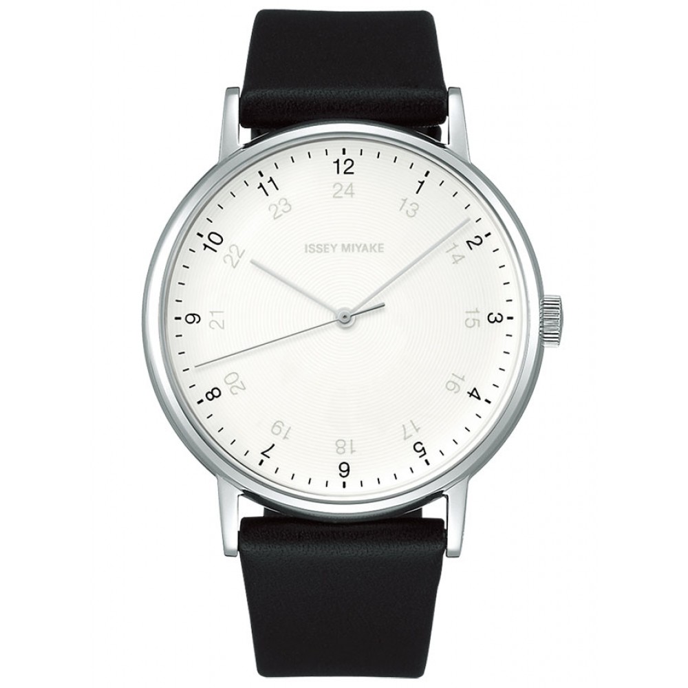 Seiko Issey Miyake f NYAJ001 - men's watch produced by Seiko. It is equipped with Japanese quartz movement and VJ21 calibre. Stainless steel case of round shape. Case dimensions are 39 mm. in diameter and 9.2 mm. in thickness. The dial of this Seiko watch is white. Display type: analog. This timepiece has hardlex glass. Leather band, band color: black. 50 m. water resistance. The watch is from Issey Miyake collection.
