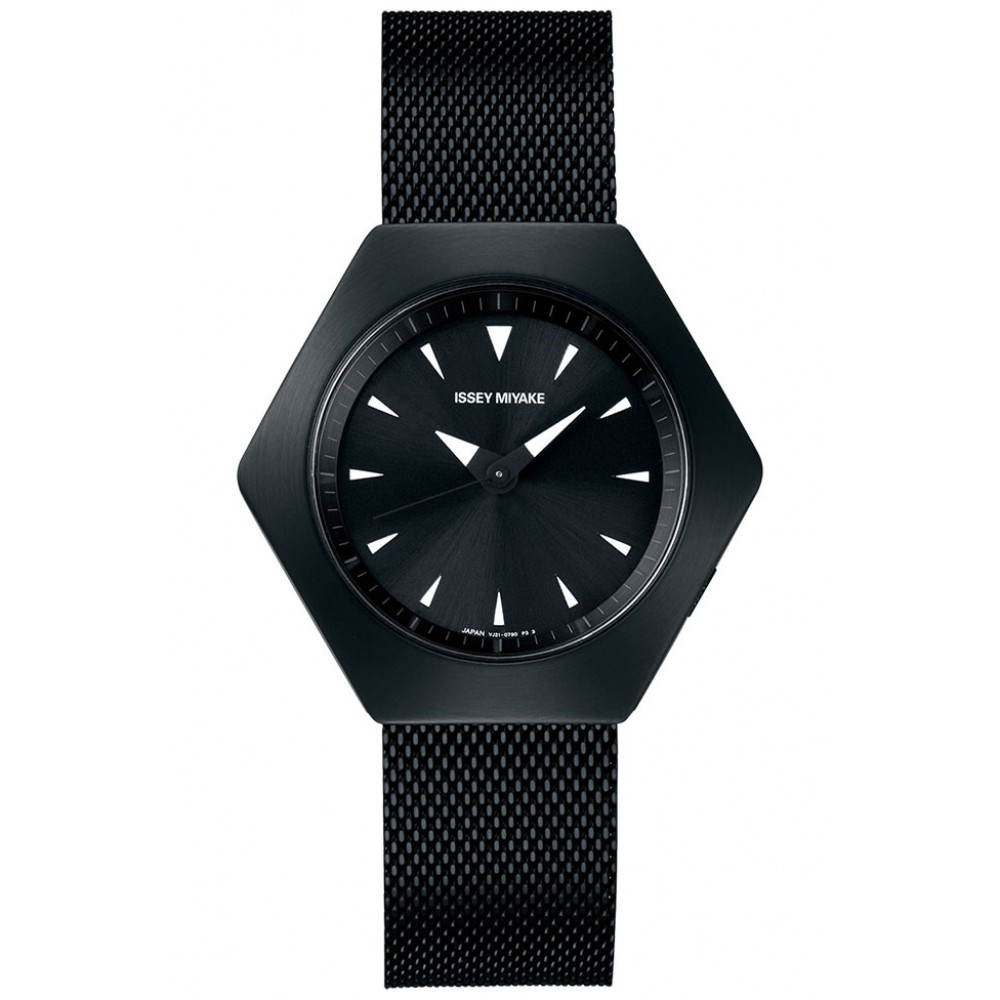 Seiko Issey Miyake ROKU NYAM002 - men's watch manufactured by Seiko. It has Japanese quartz movement and VJ21 calibre. Stainless steel, hard coating case of polygon shape. Case dimensions are 41.7 mm. in diameter and 8.9 mm. in thickness. The dial of this Seiko watch is black. Display type: analog. This timepiece has hardlex glass. Stainless steel, hard coating band, band color: black. 50 m. water resistance. The watch is from Issey Miyake collection.