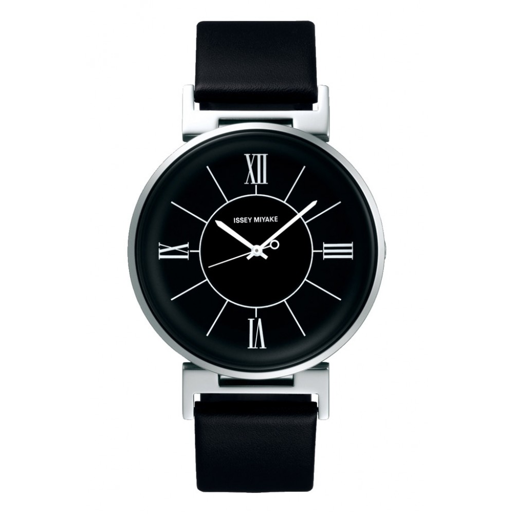 Seiko Issey Miyake U NYAL002 - men's watch manufactured by Seiko. It is equipped with Japanese quartz movement and VJ21 calibre. Stainless steel case of round shape. Case dimensions are 41.1 mm. in diameter and 9.75 mm. in thickness. The dial of this Seiko watch is black. Display type: analog. This timepiece has hardlex glass. Leather band, band color: black. 50 m. water resistance. The watch is from Issey Miyake collection.