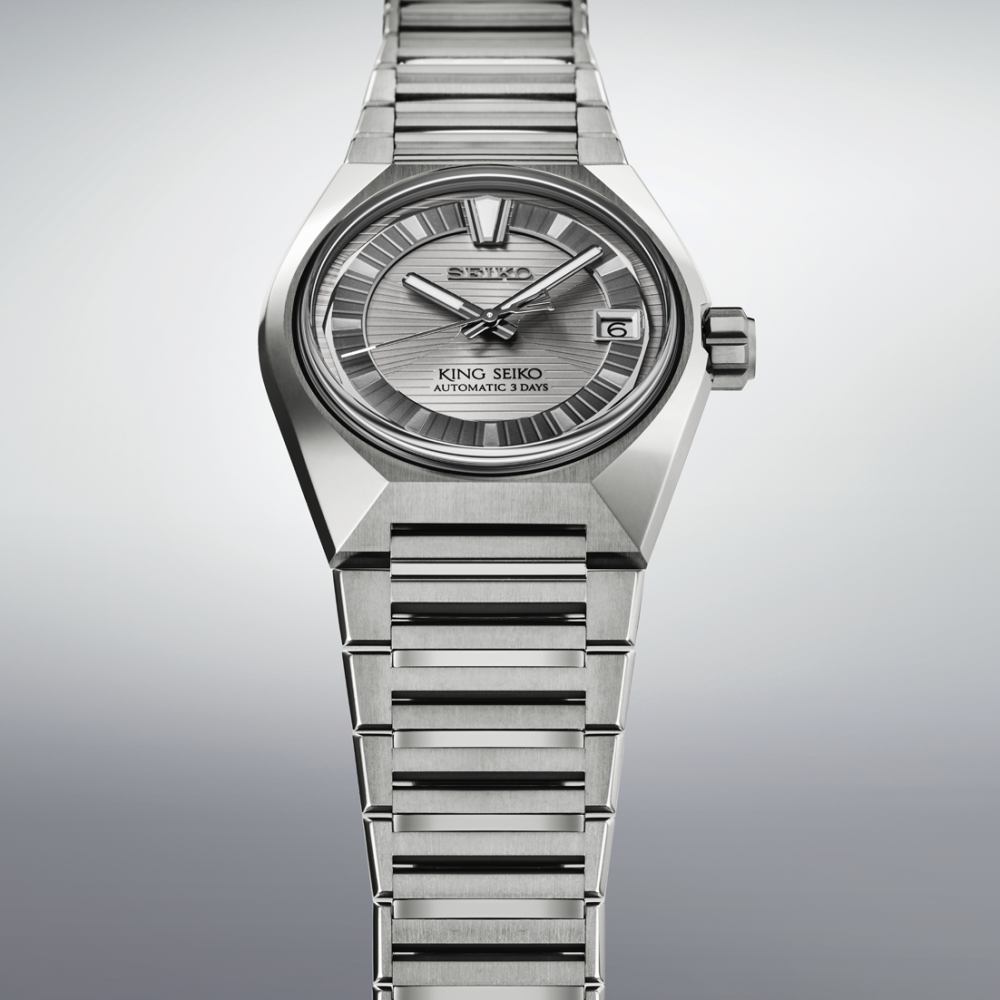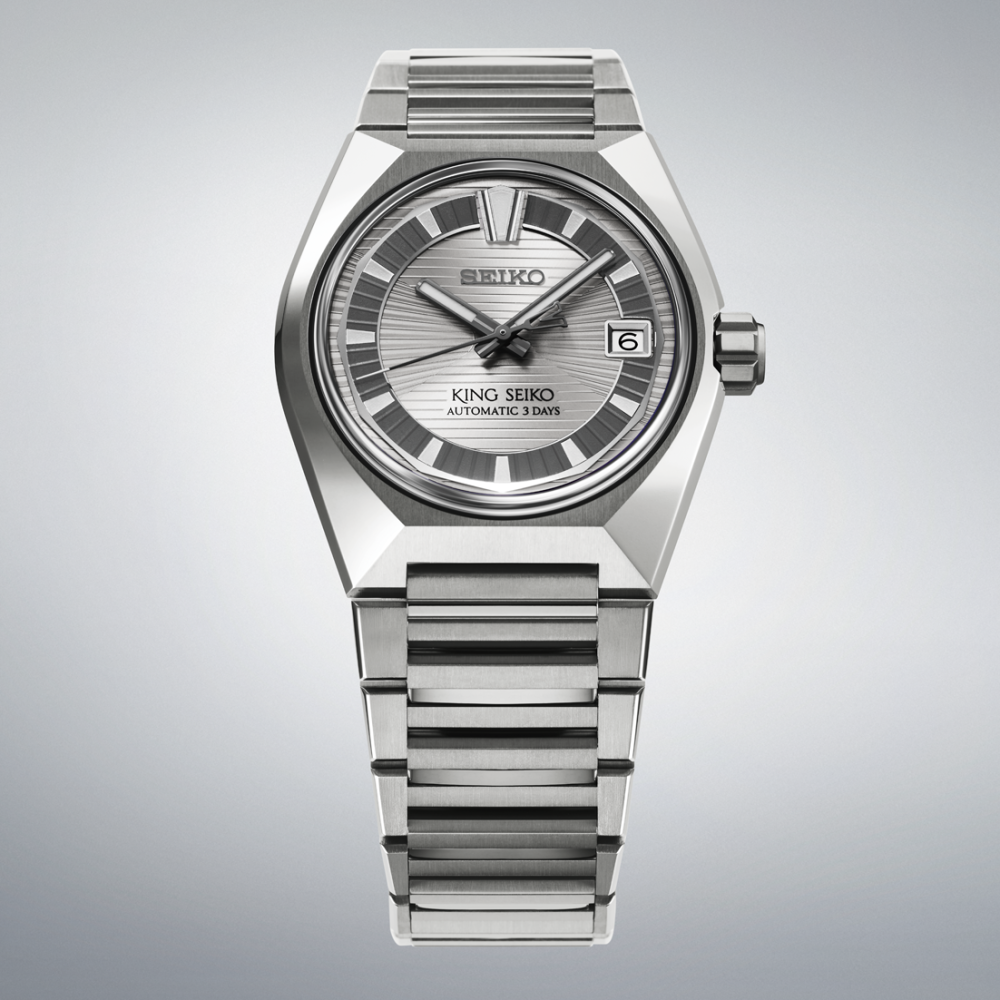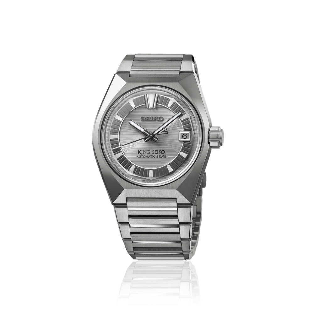 Seiko King Seiko VANAC HKF002J - men's watch manufactured by Seiko. It has Japanese automatic movement and 8L45 calibre. Titanium case of round shape. Case dimensions are 41 mm. in diameter and 14.3 mm. in thickness. The dial of this Seiko watch is gray. Display type: analog. This timepiece has sapphire, antireflection coating glass. Titanium band, band color: silver. 100 m. water resistance. The watch is from King Seiko collection. The following features are equipped: antimagnetic, date, screw-down crown, glowing hands, glowing markers.