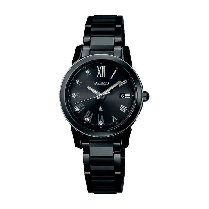 Seiko Lukia ELAIZA IKEDA Limited Edition SSQV099 - ladies watch manufactured by Seiko. It is equipped with Japanese solar quartz movement and 1B35 calibre. Titanium, hard coating case of round shape. Case dimensions are 28 mm. in diameter and 7.6 mm. in thickness. The dial of this Seiko watch is black. Display type: analog. This timepiece has sapphire, super clear coating glass. Titanium, hard coating band, band color: black. 100 m. water resistance. The watch is from Seiko Lukia collection. The following features are equipped: glowing hands, radio controlled, antimagnetic, diamond set, date, limited edition, perpetual calendar, world time.