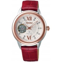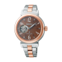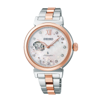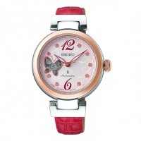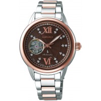 Seiko Lukia Essential Collection SSVM062 - ladies watch manufactured by Seiko. It has Japanese automatic movement and 4R38 calibre. Stainless steel, gold plated case of round shape. Case dimensions are 34.6 mm. in diameter and 11 mm. in thickness. The dial of this Seiko watch is brown. Display type: analog. This timepiece has sapphire glass. Stainless steel, gold plated band, band color: silver, gold. 100 m. water resistance. The watch is from Seiko Lukia collection. The following features are equipped: antimagnetic, glowing hands, glowing markers, crystal set.