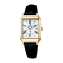 Seiko Lukia Grow SSVW212 - ladies watch produced by Seiko. It is equipped with Japanese solar quartz movement and 1B32 calibre. Stainless steel, gold plated case of rectangle shape. Case dimensions are 23.9 mm. in diameter and 7.7 mm. in thickness. The dial of this Seiko watch is white. Display type: analog. This timepiece has sapphire, super clear coating glass. Leather band, band color: black. 100 m. water resistance. The watch is from Seiko Lukia collection. The following features are equipped: radio controlled, perpetual calendar, date, antimagnetic, crystal set.