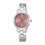 Seiko Lukia Grow SSVW219 - ladies watch produced by Seiko. It has Japanese solar quartz movement and 1B32 calibre. Stainless steel, diamond shield case of round shape. Case dimensions are 27.5 mm. in diameter and 8.2 mm. in thickness. The dial of this Seiko watch is pink. Display type: analog. This timepiece has sapphire, super clear coating glass. Stainless steel band, band color: silver. 100 m. water resistance. The watch is from Seiko Lukia collection. The following features are equipped: radio controlled, perpetual calendar, date, crystal set, antimagnetic.