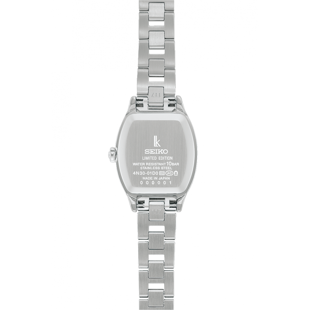 Seiko Lukia Happy Collection 2025 Holiday Season Limited Edition SSWA017 - ladies watch manufactured by Seiko. It has Japanese quartz movement and 4N30 calibre. Stainless steel case of tonneau shape. Case dimensions are 21 mm. in diameter and 7 mm. in thickness. The dial of this Seiko watch is mother of pearl. Display type: analog. This timepiece has sapphire, antireflection coating glass. Stainless steel band, band color: silver. 100 m. water resistance. The watch is from Seiko Lukia collection. The following features are equipped: antimagnetic, diamond set, limited edition.