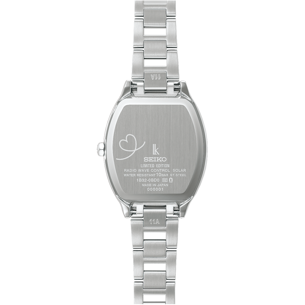 Seiko Lukia Happy Collection 2026 Warm Moments Limited Edition HEE002J - ladies watch made by Seiko. It is equipped with Japanese solar quartz movement and 1B32 calibre. Stainless steel, diamond shield case of tonneau shape. Case dimensions are 27.7 mm. in diameter and 7.7 mm. in thickness. The dial of this Seiko watch is light gray. Display type: analog. This timepiece has sapphire, super clear coating glass. Stainless steel band, band color: silver. 100 m. water resistance. The watch is from Seiko Lukia collection. The following features are equipped: radio controlled, perpetual calendar, antimagnetic, limited edition, date, crystal set.