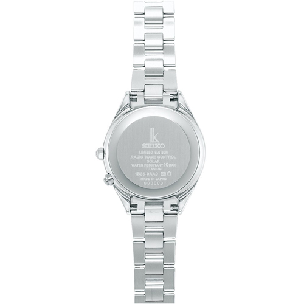 Seiko Lukia SSQV043 - ladies watch manufactured by Seiko. It is equipped with Japanese solar quartz movement and 1B35 calibre. Titanium, hard coating case of round shape. Case dimensions are 28 mm. in diameter and 7.6 mm. in thickness. The dial of this Seiko watch is blue. Display type: analog. This timepiece has sapphire, super clear coating glass. Titanium, hard coating band, band color: silver. 100 m. water resistance. The watch is from Seiko Lukia collection. The following features are equipped: antimagnetic, diamond set, limited edition, perpetual calendar, world time, radio controlled, date, glowing hands.