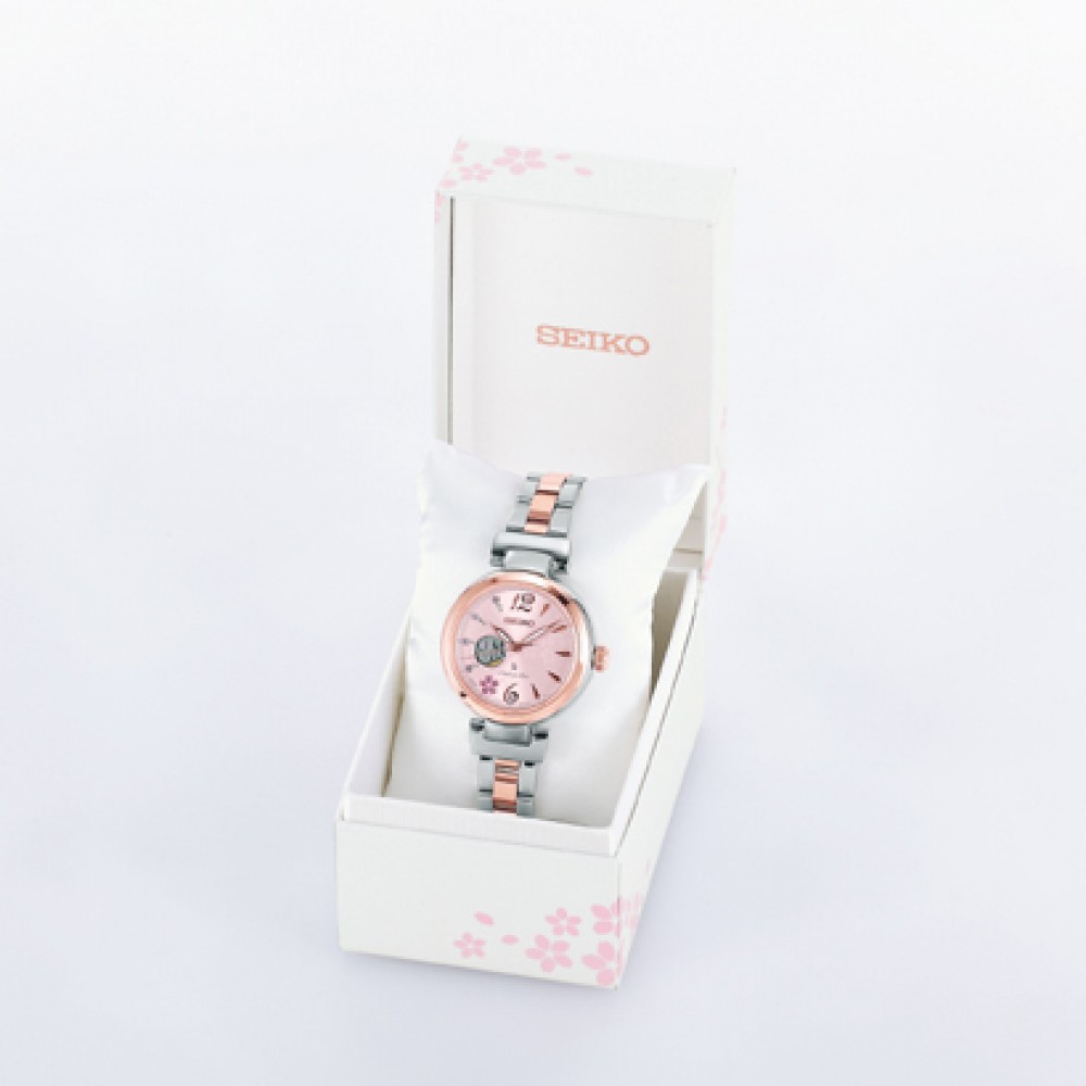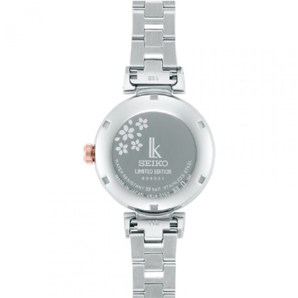 Seiko Lukia SSVM040 - ladies watch produced by Seiko. It has Japanese automatic movement and 4R38 calibre. Stainless steel, gold plated case of round shape. Case dimensions are 33.9 mm. in diameter and 10.3 mm. in thickness. The dial of this Seiko watch is pink. Display type: analog. This timepiece has sapphire glass. Stainless steel, gold plated band, band color: silver, gold. 100 m. water resistance. The watch is from Seiko Lukia collection. The following features are equipped: antimagnetic, crystal set, limited edition, glowing hands, glowing markers.