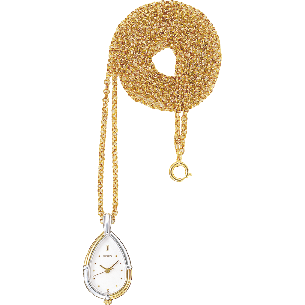 Seiko Pendant SWPX004 - ladies watch manufactured by Seiko. It has Japanese quartz movement and 1F21 calibre. Brass, stainless steel, gold plated case of oval shape. Case dimensions are 16.6 mm. in diameter and 5.3 mm. in thickness. The dial of this Seiko watch is white. Display type: analog. This timepiece has hardlex glass. Stainless steel, gold plated band, band color: gold. 30 m. water resistance. The watch is from Seiko Pocket collection.