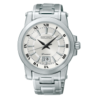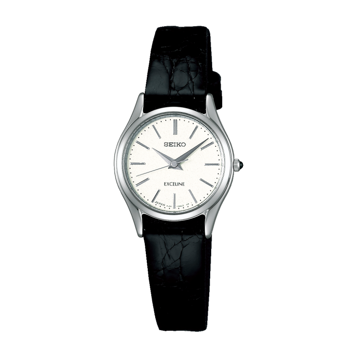 Seiko Premier SWDL209 - ladies watch manufactured by Seiko. It has Japanese quartz movement and 4J41 calibre. Stainless steel, hard coating case of round shape. Case dimensions are 23.9 mm. in diameter and 5.1 mm. in thickness. The dial of this Seiko watch is white. Display type: analog. This timepiece has sapphire, antireflection coating glass. Caiman leather band, band color: black. 30 m. water resistance. The watch is from Seiko Dolce & Exceline collection. The following features are equipped: antimagnetic.