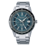 Seiko Presage Automatic GMT Style60's SARY229 - men's watch manufactured by Seiko. It has Japanese automatic movement and 4R34 calibre. Stainless steel case of round shape. Case dimensions are 40.8 mm. in diameter and 13 mm. in thickness. The dial of this Seiko watch is old blue. Display type: analog. This timepiece has hardlex glass. Stainless steel band, band color: silver. 50 m. water resistance. The watch is from Seiko Presage collection. The following features are equipped: antimagnetic, glowing hands, glowing markers, date, dual time.