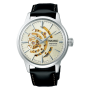 Seiko Presage Basic Line Cocktail Time STAR BAR Limited Edition SARY221 - men's watch made by Seiko. It has Japanese automatic movement and 4R72 calibre. Stainless steel case of round shape. Case dimensions are 40.5 mm. in diameter and 11.6 mm. in thickness. The dial of this Seiko watch is light gold. Display type: analog. This timepiece has hardlex glass. Calf leather band, band color: black. 50 m. water resistance. The watch is from Seiko Presage collection. The following features are equipped: antimagnetic, limited edition.