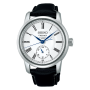 Seiko Presage Craftsmanship Series SART009 - men's watch made by Seiko. It has Japanese automatic movement and 6R5H calibre. Stainless steel, diamond shield case of round shape. Case dimensions are 40.2 mm. in diameter and 12.1 mm. in thickness. The dial of this Seiko watch is white. Display type: analog. This timepiece has sapphire, antireflection coating glass. Calf leather band, band color: black. 100 m. water resistance. The watch is from Seiko Presage collection. The following features are equipped: antimagnetic.