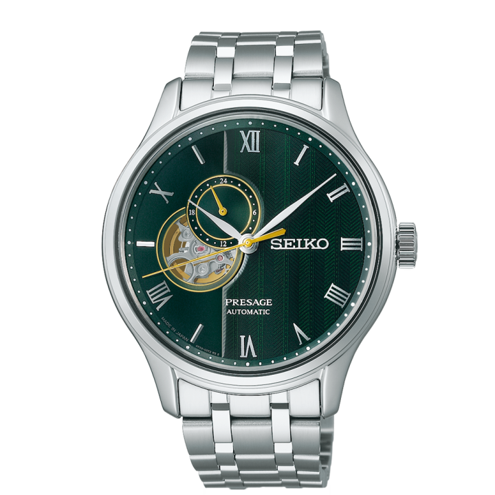 Seiko Presage Japanese Garden SARY237 - men's watch produced by Seiko. It has Japanese automatic movement and 4R39 calibre. Stainless steel case of round shape. Case dimensions are 41.8 mm. in diameter and 12.5 mm. in thickness. The dial of this Seiko watch is green. Display type: analog. This timepiece has sapphire glass. Stainless steel band, band color: silver. 30 m. water resistance. The watch is from Seiko Presage collection. The following features are equipped: antimagnetic.