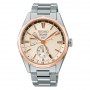 Seiko Presage Prestige Line SARF012 - men's watch produced by Seiko. It has Japanese automatic movement and 6R64 calibre. Titanium, hard coating, gold plated case of round shape. Case dimensions are 40 mm. in diameter and 14.6 mm. in thickness. The dial of this Seiko watch is beige. Display type: analog. This timepiece has sapphire, antireflection coating glass. Titanium, hard coating band, band color: silver. 100 m. water resistance. The watch is from Seiko Presage collection. The following features are equipped: date, antimagnetic, power reserve indicator.