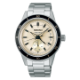Seiko Presage SARY209 - men's watch made by Seiko. It is equipped with Japanese automatic movement and 4R57 calibre. Stainless steel case of round shape. Case dimensions are 40.8 mm. in diameter and 14.3 mm. in thickness. The dial of this Seiko watch is ivory. Display type: analog. This timepiece has hardlex glass. Stainless steel band, band color: silver. 50 m. water resistance. The watch is from Seiko Presage collection. The following features are equipped: antimagnetic, glowing hands, glowing markers, power reserve indicator, date.