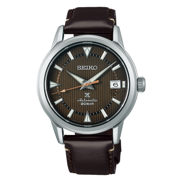 Seiko Prospex Alpinist SBDC161 - men's watch produced by Seiko. It is equipped with Japanese automatic movement and 6R35 calibre. Stainless steel case of round shape. Case dimensions are 38 mm. in diameter and 12.9 mm. in thickness. The dial of this Seiko watch is brown. Display type: analog. This timepiece has sapphire, antireflection coating glass. Leather band, band color: brown. 200 m. water resistance. The watch is from Seiko Prospex collection. The following features are equipped: antimagnetic, date, screw-down crown, glowing hands, glowing markers.