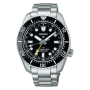 Seiko Prospex Diver Scuba GMT SBEJ011 - men's watch produced by Seiko. It is equipped with Japanese automatic movement and 6R54 calibre. Stainless steel, diamond shield case of round shape. Case dimensions are 42 mm. in diameter and 12.9 mm. in thickness. The dial of this Seiko watch is black. Display type: analog. This timepiece has sapphire, antireflection coating glass. Stainless steel band, band color: silver. 200 m. water resistance. The watch is from Seiko Prospex collection. The following features are equipped: date, dual time, antimagnetic, screw-down crown, glowing hands, glowing markers.