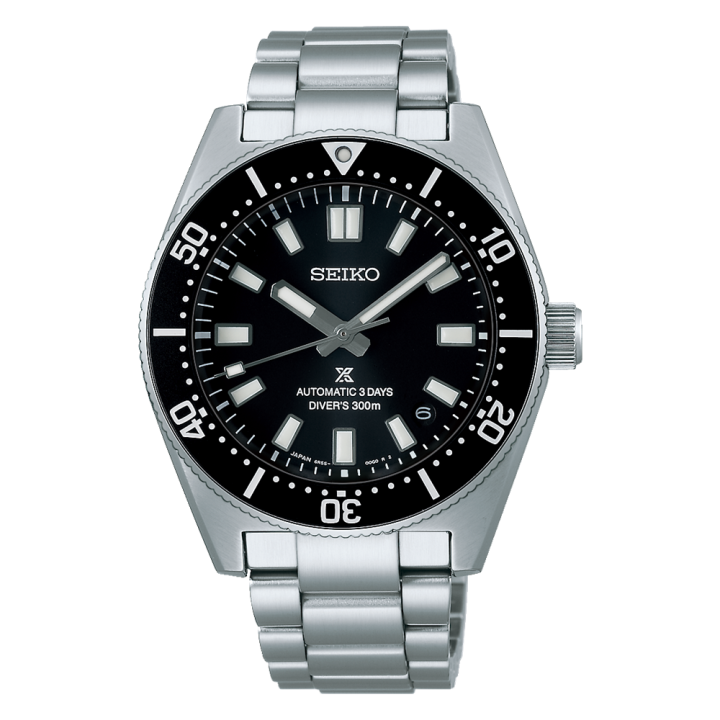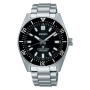 Seiko Prospex Diver Scuba SBDC197 - men's watch produced by Seiko. It is equipped with Japanese automatic movement and 6R55 calibre. Stainless steel, diamond shield case of round shape. Case dimensions are 40 mm. in diameter and 13 mm. in thickness. The dial of this Seiko watch is black. Display type: analog. This timepiece has sapphire, antireflection coating glass. Stainless steel band, band color: silver. 300 m. water resistance. The watch is from Seiko Prospex collection. The following features are equipped: antimagnetic, screw-down crown, glowing hands, glowing markers, date.