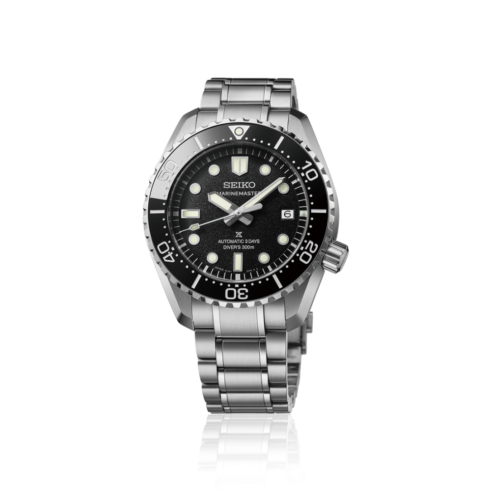 Seiko Prospex Marinemaster Divers 1968 Heritage HBF001J - men's watch manufactured by Seiko. It is equipped with Japanese automatic movement and 8L45 calibre. Stainless steel, ceramic, diamond shield case of round shape. Case dimensions are 42.6 mm. in diameter and 14.1 mm. in thickness. The dial of this Seiko watch is black. Display type: analog. This timepiece has sapphire, antireflection coating glass. Stainless steel band, band color: silver. 300 m. water resistance. The watch is from Seiko Prospex collection. The following features are equipped: antimagnetic, screw-down crown, glowing hands, glowing markers, date.