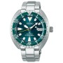 Seiko Prospex Mini Turtle SBDY083 - men's watch made by Seiko. It has Japanese automatic movement and 4R35 calibre. Stainless steel case of round shape. Case dimensions are 42.3 mm. in diameter and 12.6 mm. in thickness. The dial of this Seiko watch is green. Display type: analog. This timepiece has hardlex glass. Stainless steel band, band color: silver. 200 m. water resistance. The watch is from Seiko Prospex collection. The following features are equipped: antimagnetic, glowing hands, glowing markers, date.
