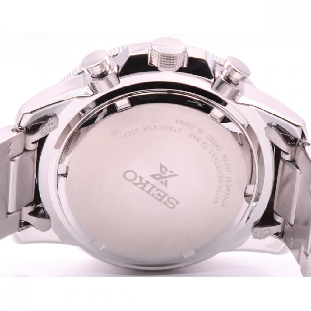 Seiko Prospex SBDL029 - men's watch produced by Seiko. It is equipped with Japanese solar quartz movement and V172 calibre. Stainless steel case of round shape. Case dimensions are 43 mm. in diameter and 12.3 mm. in thickness. The dial of this Seiko watch is black. Display type: analog. This timepiece has hardlex glass. Stainless steel band, band color: silver. 100 m. water resistance. The watch is from Seiko Prospex collection. The following features are equipped: date, alarm, chronograph, glowing hands, glowing markers.