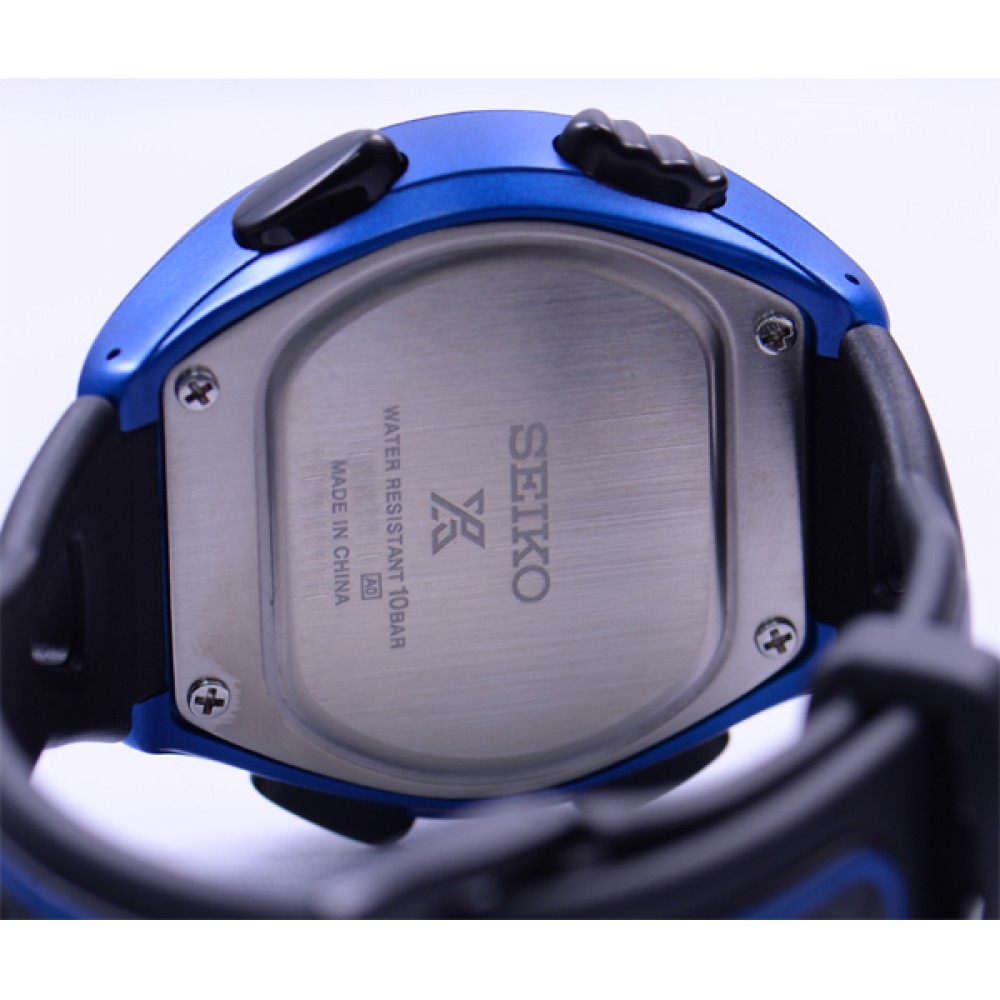 Seiko Prospex SBEF029 - men's watch produced by Seiko. It is equipped with Japanese solar quartz movement and S680 calibre. Polymer case of tonneau shape. Case dimensions are 46.8 mm. in diameter and 43.4 mm. in thickness. The dial of this Seiko watch is lcd. Display type: digital. This timepiece has hardlex glass. Polymer band, band color: black. 100 m. water resistance. The watch is from Seiko Prospex collection. The following features are equipped: alarm, world time, chronograph, countdown timer, perpetual calendar, date, day, month, backlight.