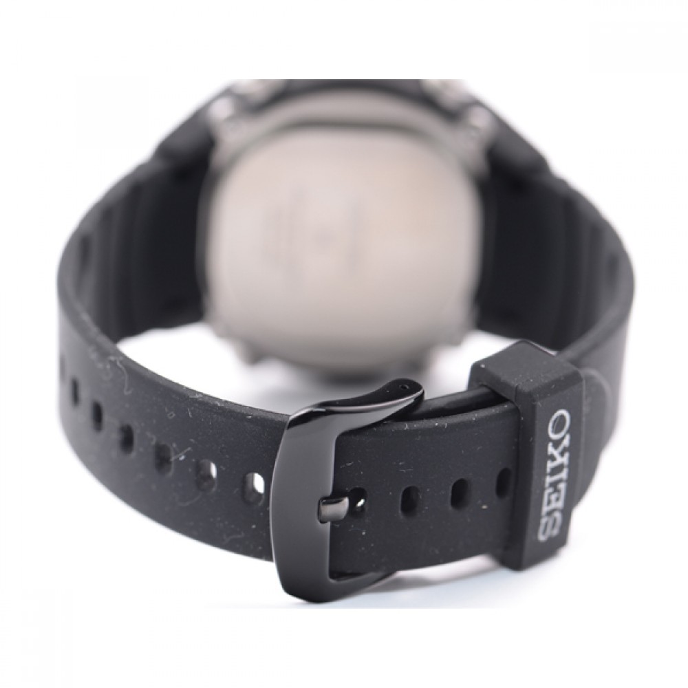 Seiko Prospex SBEM003 - men's watch made by Seiko. It is equipped with Japanese solar quartz movement and S833 calibre. Polymer, aluminum case of round shape. Case dimensions are 49.5 mm. in diameter and 12.4 mm. in thickness. The dial of this Seiko watch is lcd. Display type: digital. This timepiece has hardlex glass. Polymer band, band color: black. 200 m. water resistance. The watch is from Seiko Prospex collection. The following features are equipped: date, day, backlight, chronograph, alarm, perpetual calendar, altimeter, thermometer, barometer, compass, power reserve indicator, bluetooth.